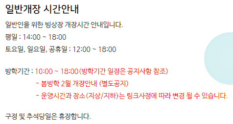 매일 10:00 ~ 17:00 인터넷 사전 예약 필수