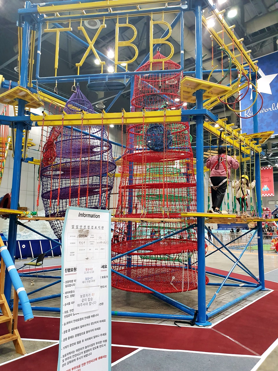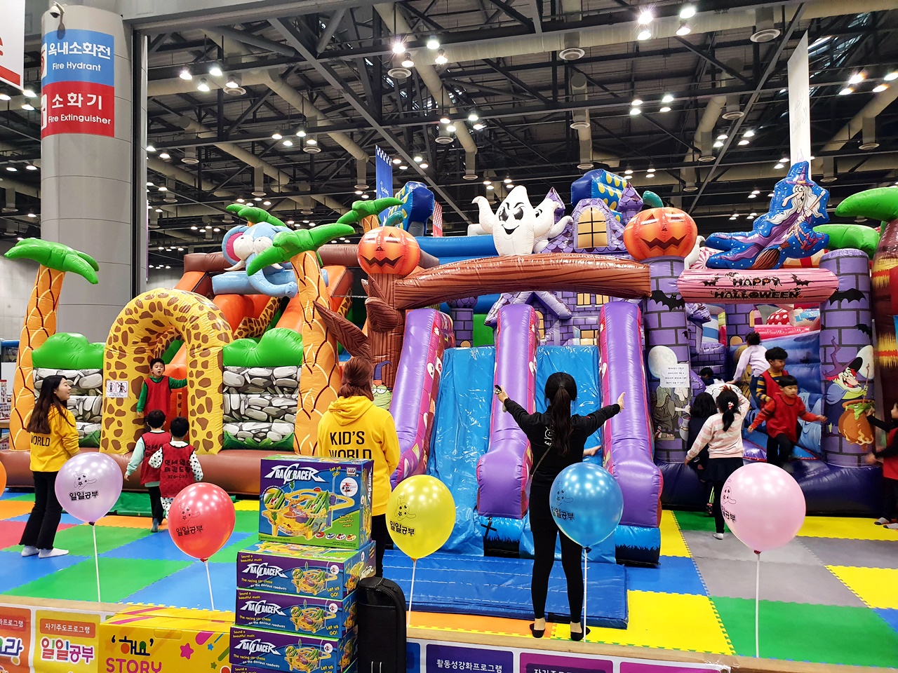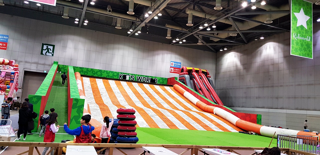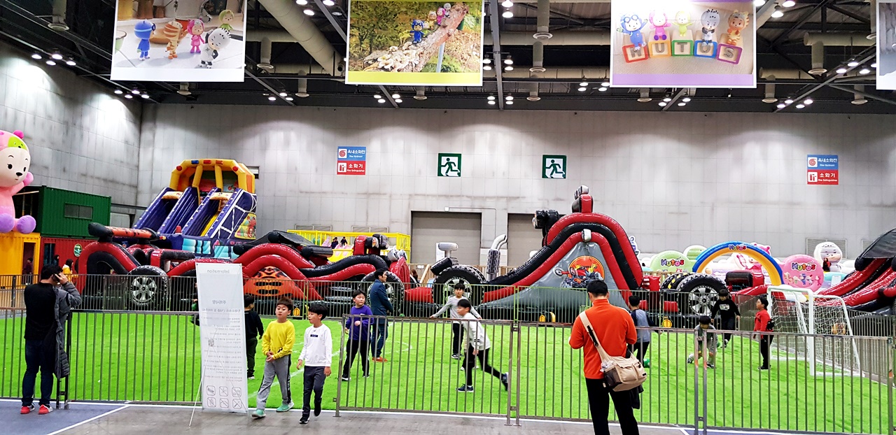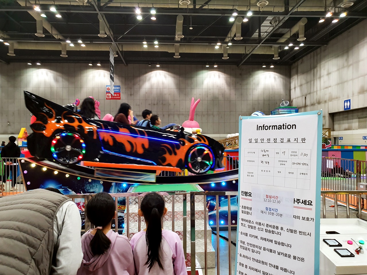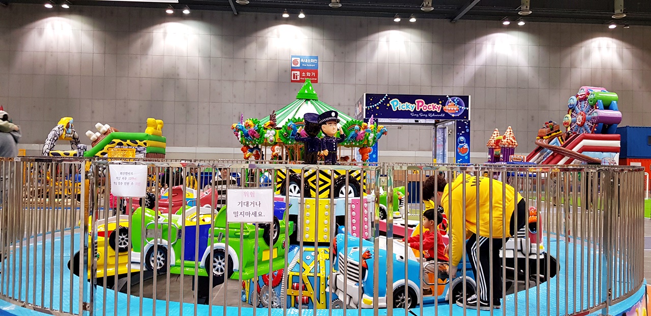 일산 킨텍스 안에는 아이들이 좋아할만한 실내 놀이공원이 있습니다. 놀이공원이라고 해야할지, 키즈카페라고 해야할지 모르겠는데, 놀이공원이라고 하기엔 규모가 좀 작은 것 같고, 키즈카페라고 하기엔 규모가 좀 큰 느낌이네요. 간단하게 설명하자면 실내 아~주 넓은 공간에 아이들이 좋아할만한 시설, 예를 들면 슬라이드가 있는 에어바운스, 회전목마와 같은 작은 놀이시설, 이런 시설들로 가득 차 있습니다. 정말 다양하게 많이 있습니다.