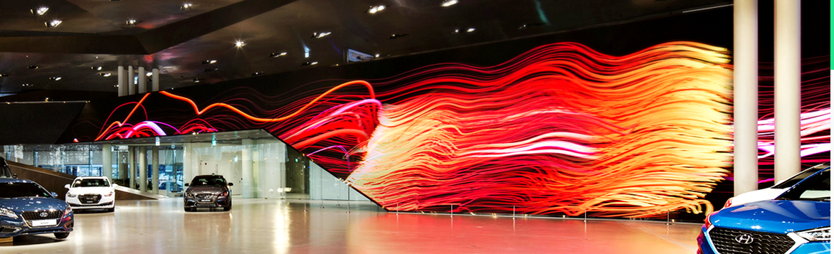 현대에서 일을 냈습니다. 우리나라에도 이렇게 멋있는 모터스튜디오가 있는 줄은 몰랐네요. 물론 현대 모터스튜디오가 하남에도 있고 ,강남에도 있지만, 거기는 자동차 판매를 위한 전시 정도 수준이었는데요. 고양에 있는 현대모터스튜디오는 정말 세련된 전시관 느낌이 납니다. 건물 외형부터가 우리나라가 아닌 것 같아요. 하긴 요즘 우리나라 건축 디자인 끝내줍니다.