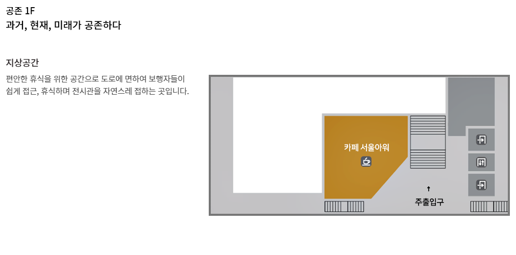 총 4개의 전시실로 구성이 되어 있는데요, 기획전으로 작품 전시가 열리고 있는데, 현재(20.01.18) '광장', '덕수궁-서울 야외 프로젝트: 기억된 미래' 이 두 가지 주제로 전시가 열리고 있습니다. 덕수궁 구경도 하고 안에 들어와서 미술관 전시도 함께 보면 좋겠네요.