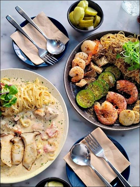 파스타 종류도 다 맛있고, 샐러드도 맛있습니다. 샐러드 중에는 연어샐러드가 맛있고, 갈릭쉬림프도 맛있습니다.