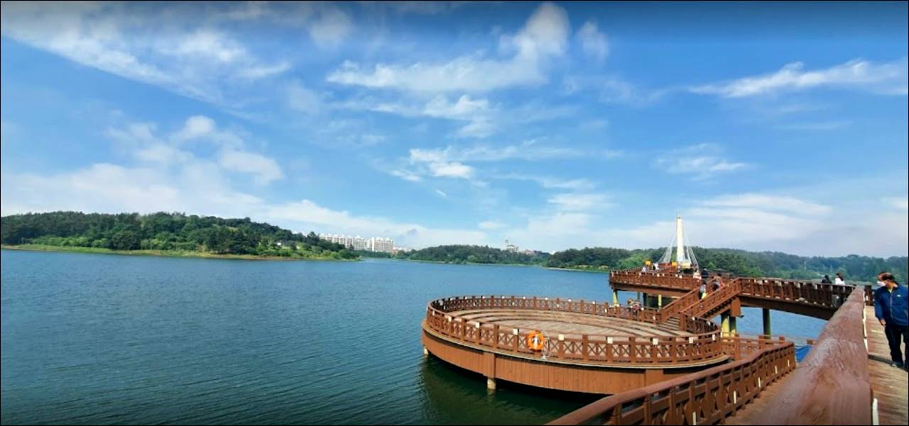 다음으로 소개할 군산 여행 베스트10은 은파호수공원입니다. 해질 무렵 물결이 반짝이는 아름다운 모습 때문에 은파라고 불리는데요. 호수 둘레로 산책로가 잘 정비되어 있고, 호수 중앙에 교각을 세워서 다양한 코스로 호수 주변을 거닐 수 있어서 사람들이 많이 찾고 있습니다.