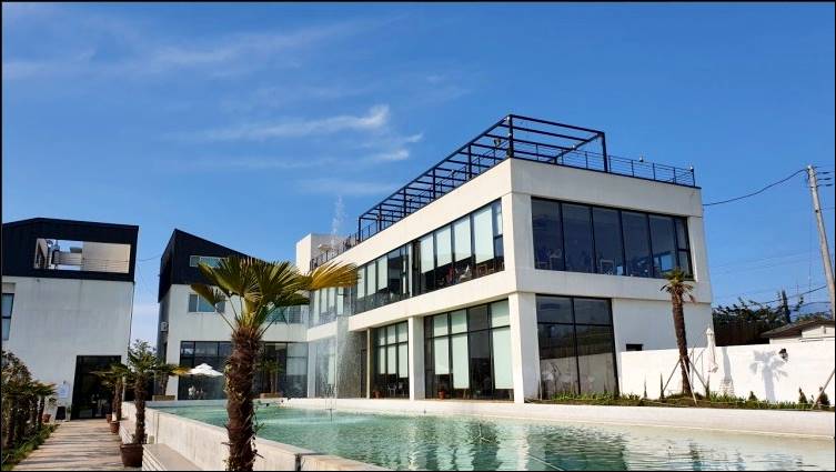 영화나 드라마에서 나올 법한 그런 아름다운 풍경이 펼쳐지는데요. 정원도 있고, 굉장히 큰 풀장이 있습니다.