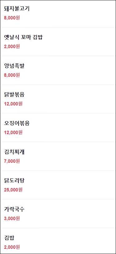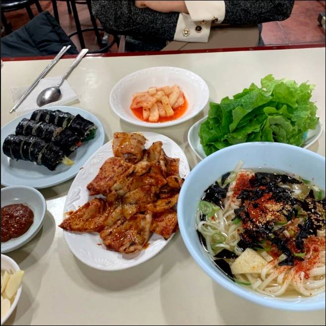 돼지불고기와 김밥을 상추에 싸서 먹으면 정말 맛있습니다. 그 외에 양념족발, 닭발볶음, 오징어볶음, 가락국수도 맛있습니다. 예전에는 저렴하게 맛있는 집으로 유명해서 현지인들이 많이 찾았는데, 지금은 가격이 살짝 올라서 자주 찾는 현지인들은 불만이 좀 있습니다. 그러나 맛은 그대로 맛있습니다.