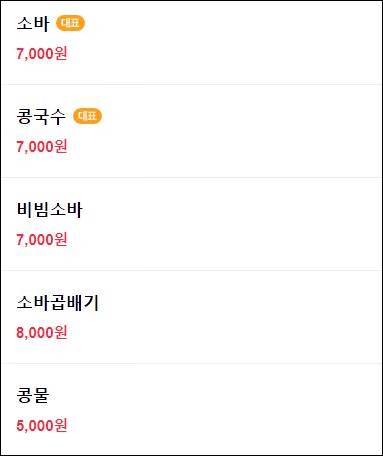 콩국수를 싫어하는 분들은 메밀소바를 추천합니다. 메밀소바도 정말 맛있습니다. 특히 비빔소바는 참기름 맛이 진하게 나는 게 맛있습니다.