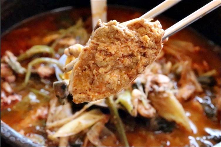 참게탕에는 알이 정말 꽉 차있습니다. 참게와 메기, 그리고 새우로 어우러진 국물맛이 일품입니다.
