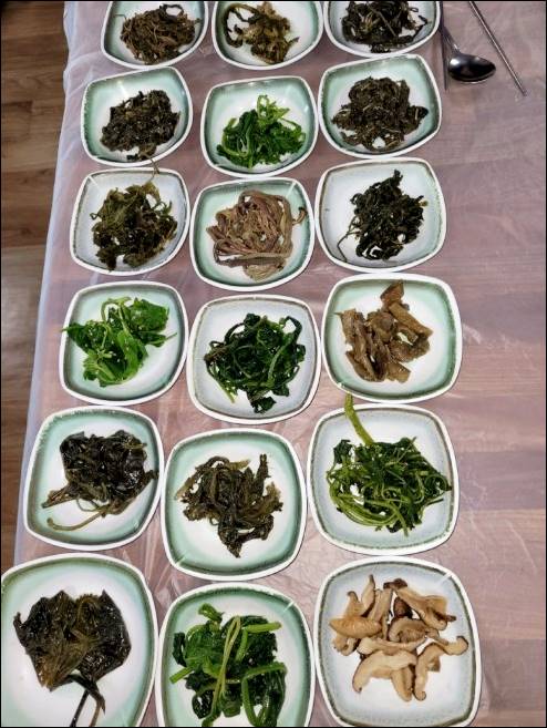 여러 나물을 밥과 함께 비벼 먹는데, 여기는 고추장이 아닌 참기름으로 비벼 먹습니다. 그래서 나물의 향이 그대로 느낄 수 있습니다. 함께 나오는 청국장과 함께 먹으면 맛이 정말 좋습니다.
