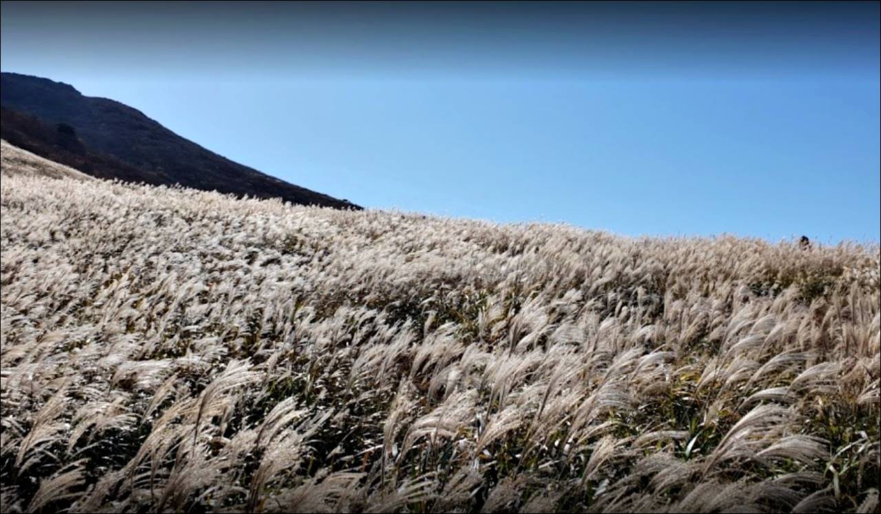 드넓은 억새밭은 11월 말까지 볼 수 있습니다. 여러 코스로 이곳에 올라올 수 있는데, 등산 초보자가 가기에는 사슴농장에서 출발하는 게 좋습니다. 약 6km의 거리이고, 왕복 3시간 정도 걸립니다.