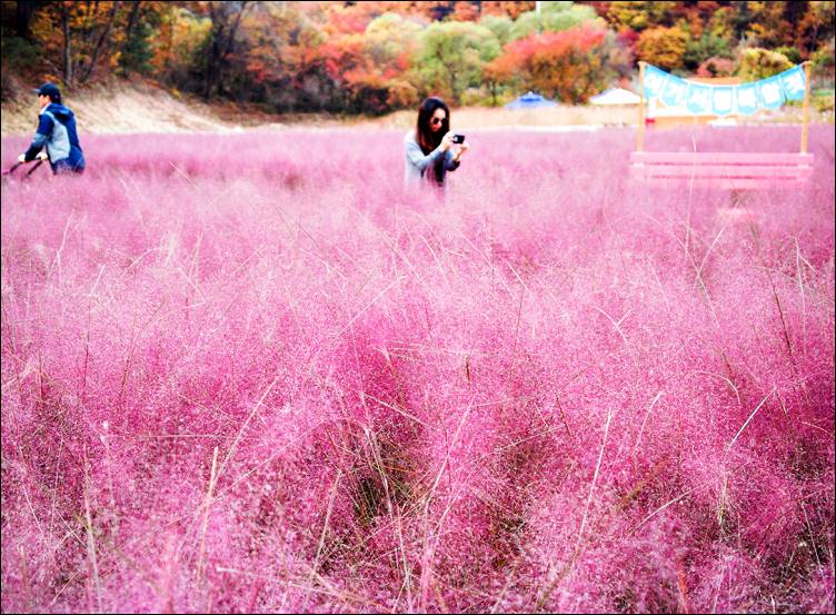 팜파스 배경으로 찍은 사진들이 인터넷에 돌아다니면서 많은 사람들이 이곳을 찾고 있습니다. 핑크뮬리도 이곳에서 볼 수 있습니다.
