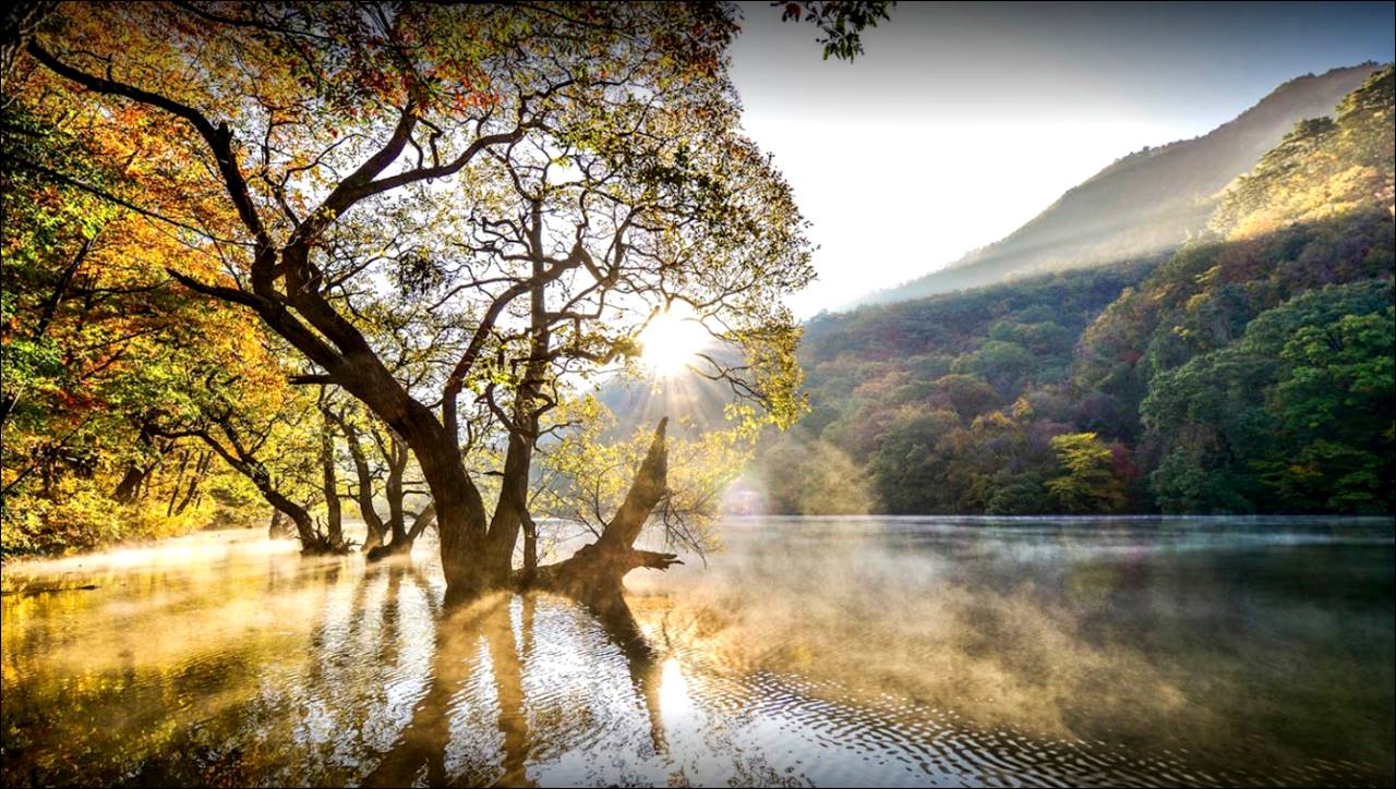 가장 먼저 소개할 가을 여행지 추천은 청송 주산지입니다. 1720년에 땅을 파고, 주위에 둑을 쌓아서 1721년에 완공했는데, 이후 300년 동안 주위 산골에서 내려온 물이 여기에 고여있습니다. 청송 주산지는 영화 '봄여름가을겨울 그리고 봄'의 촬영지로 유명한 곳입니다.