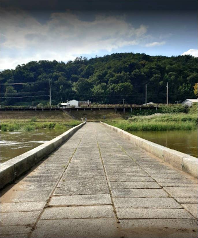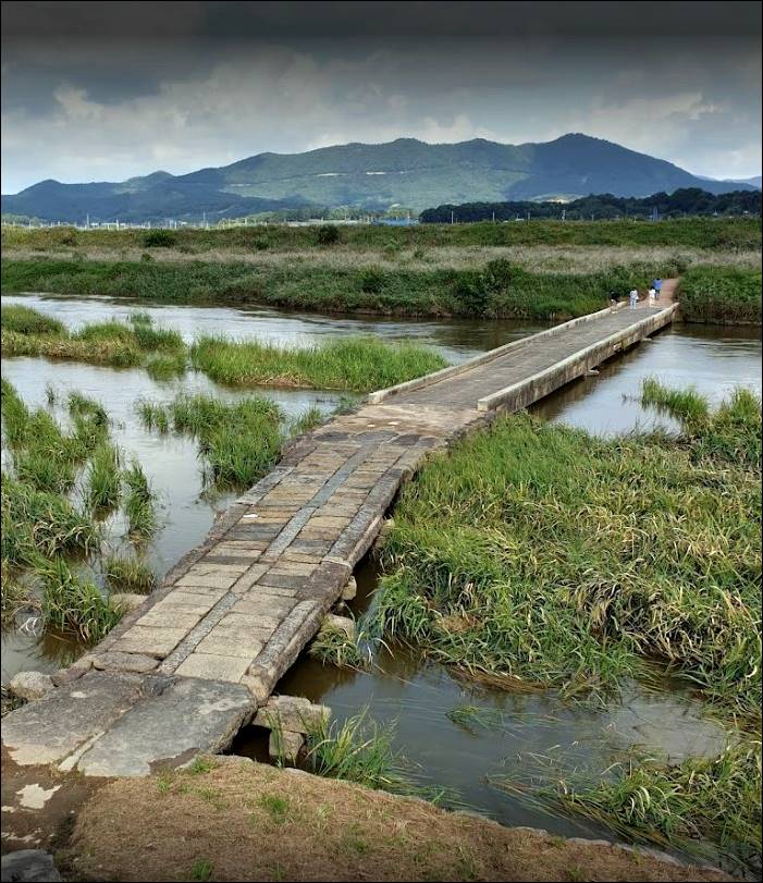 다음으로 소개할 전남 함평 가볼만한곳은 고막천석교입니다. 이 석교는 함평과 나주 경계 사이를 흐르는 고막천을 가로지르는 다리입니다. 1390~1495년 조성된 것으로 추정되는데요. 널다리형식의 원래의 위치에 원형을 간직하고 남아있는 가장 오래된 우리나라 유일의 다리입니다.