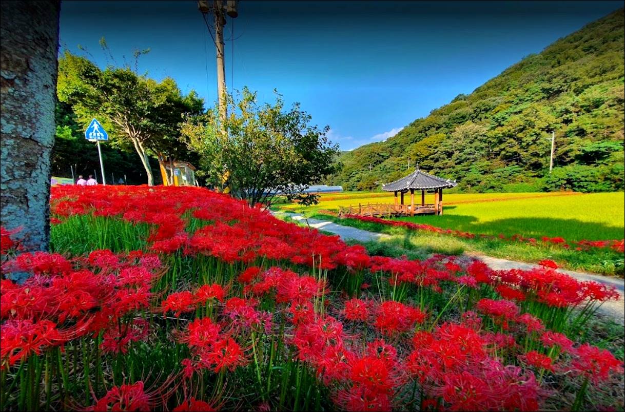 가장 먼저 소개할 함평 가볼만한곳 베스트10은 꽃무릇공원입니다. 이곳은 한국의 백경중 일경에 속하는 꽃무릇군락이 있는 곳입니다.