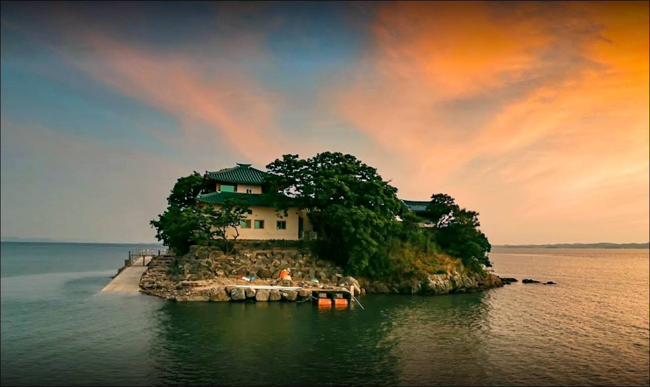 다음으로 소개할 서산 가볼만한곳 베스트10은 간월암입니다. 여기는 서산 제 3경입니다. 무학대사가 이곳에서 달을 보고 홀연히 깨우쳤다고 해서 암자 이름을 간월암이라고 불렀다고 합니다. 섬이름은 간월도입니다. 바닷물이 빠지는 간조가 되면 육지와 연결이 되는데, 바닷물이 들어오는 만조가 되면 섬이 되는 암자입니다.