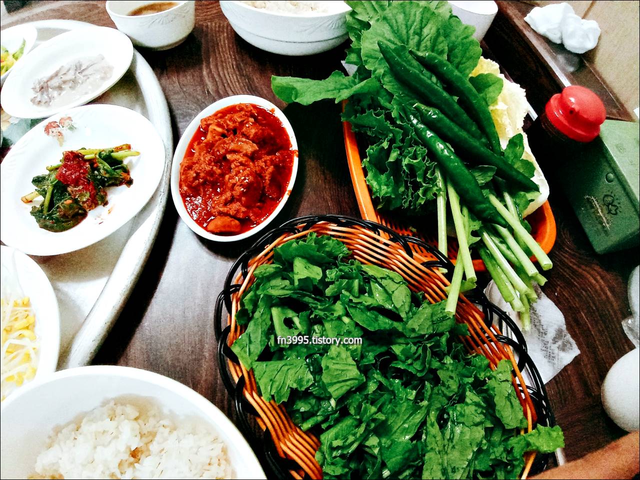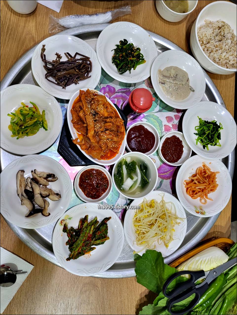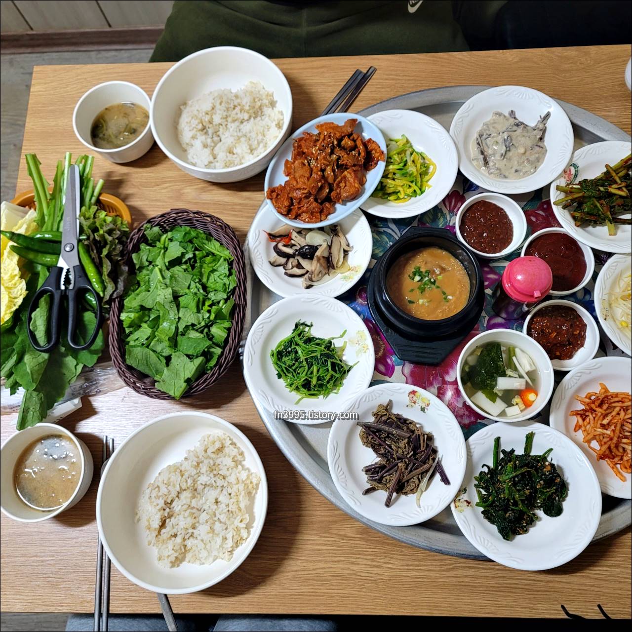 아주 푸짐하게 한 상 차려서 나오는데, 나물이나 쌈 좋아하시는 분들에게 추천하는 곳입니다. 1인 9천원입니다.