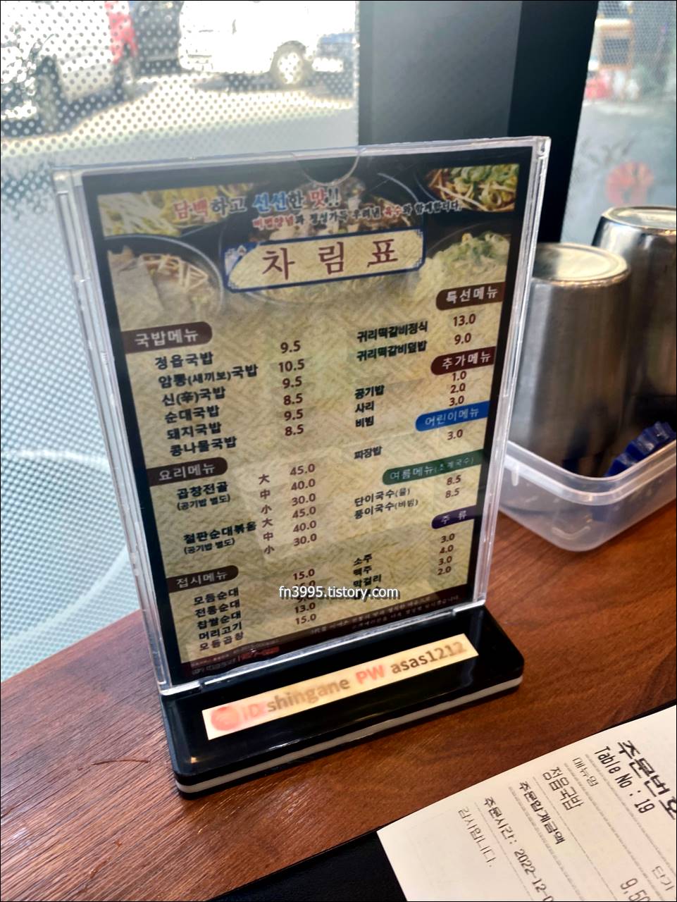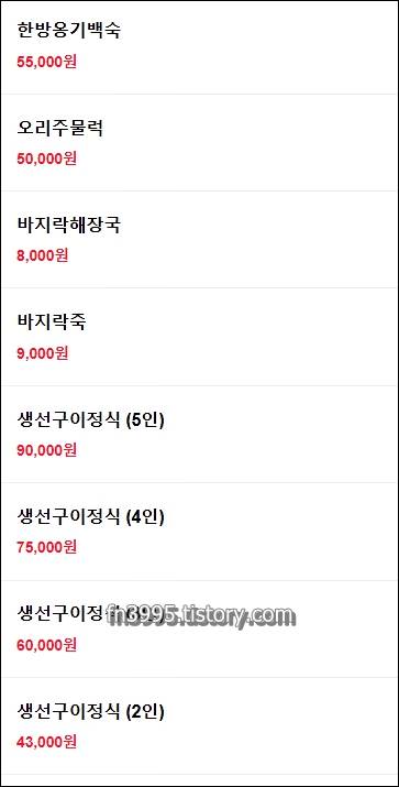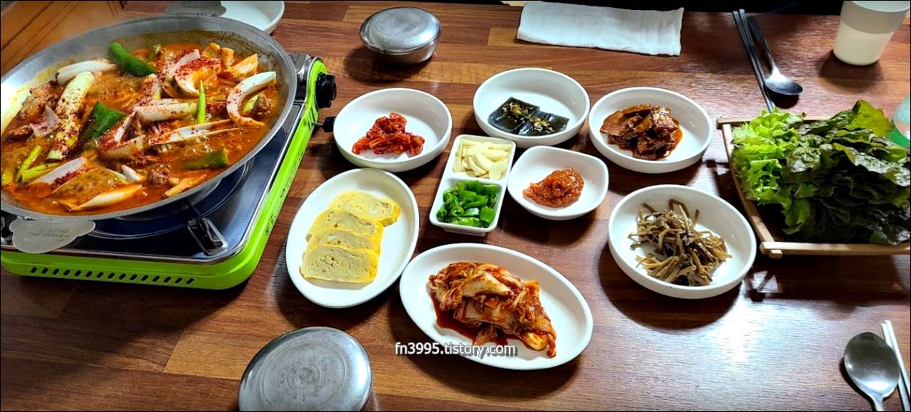 이곳의 메뉴는 딱 하나입니다. 매운갈낙찜. 여기에 사리를 기호대로 추가하면 됩니다.