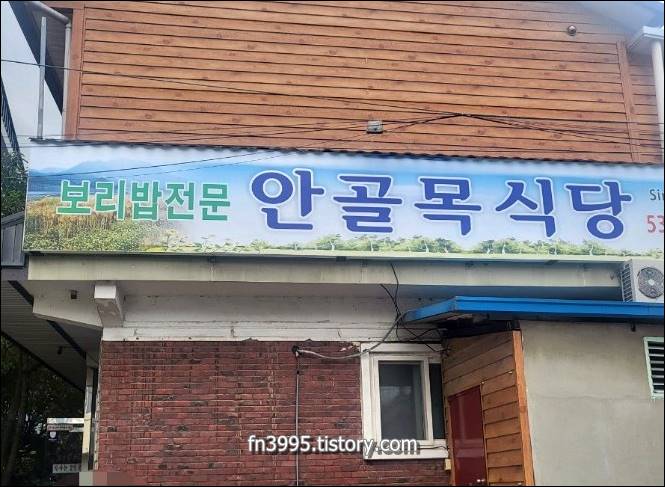 다음으로 소개할 정읍 맛집 추천은 안골목식당입니다. 여기는 아주 저렴하게 맛난 보리밥 정식을 먹을 수 있는 곳입니다. 점심시간이 되면 사람들이 아주 많이 몰리기 때문에 서둘러서 가야 됩니다. 일단 테이블이 많지 않아요.