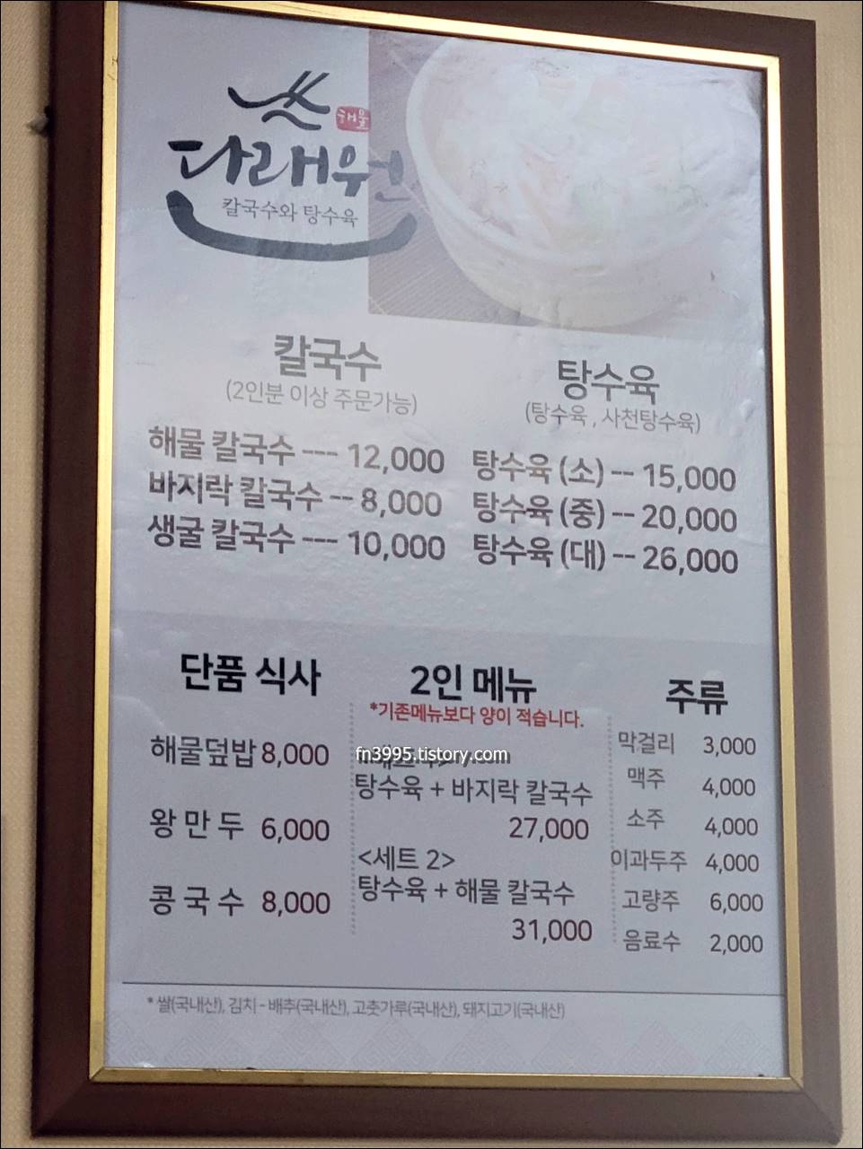 다음으로 소개할 전북 정읍 맛집 추천은 다래원해물칼국수입니다. 여기는 메뉴 구성이 특이한데요. 칼국수와 탕수육 전문점입니다. 점심 때 오면 대기를 할 정도로 인기가 많은 음식점입니다. 아무래도 점심 장사만 하기 때문에 점심에 사람이 많은 듯 합니다.