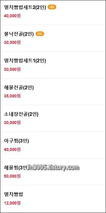 여기도 멸치쌈밥 맛집이죠. 멸치쌈밥세트를 주문하면 갈치와 멸치튀김도 같이 나오는데 다 맛있습니다. 식당도 깔끔해서 멸치쌈밥을 먹고싶은데 오래되고 허름한 음식점은 좀 꺼려하고, 깨끗한 음식점 좋아하는 분들은 여길 추천합니다.