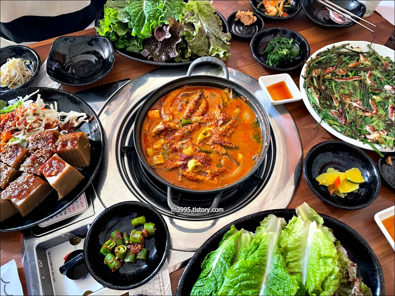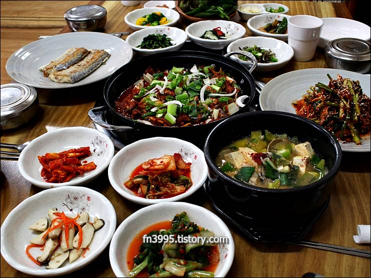 여기는 워낙 유명하죠. 남해의 맛집 하면 동천식당으로 말할 정도로 유명합니다. 멸치쌈밥과 불낙전골이 인기가 많습니다.