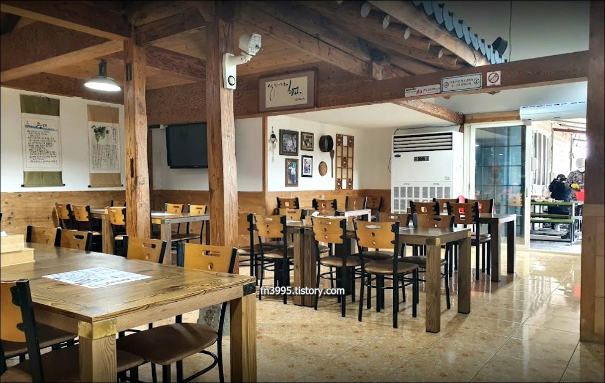 주차공간이 협소해서 마을 1, 2주차장에 주차하고 마을길 따라서 내려오면 암수바위가 있는데, 그 옆 가장 큰 식당입니다.
