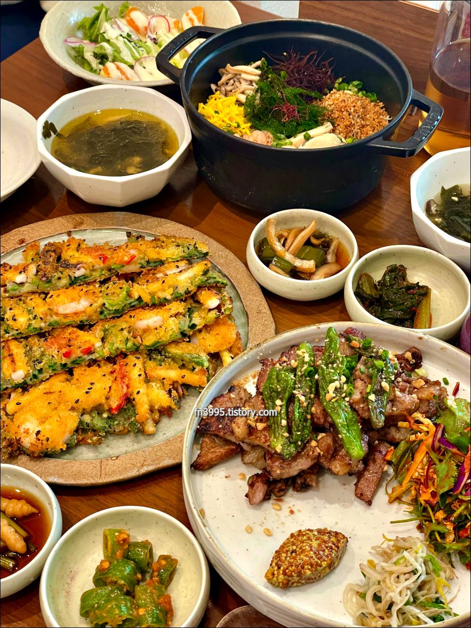 재료들이 신선하고, 평소에 먹어보지 못한 음식들이라 새로운 맛입니다. 파전은 바삭바삭하고, 솥밥은 바다향이 느껴집니다.
