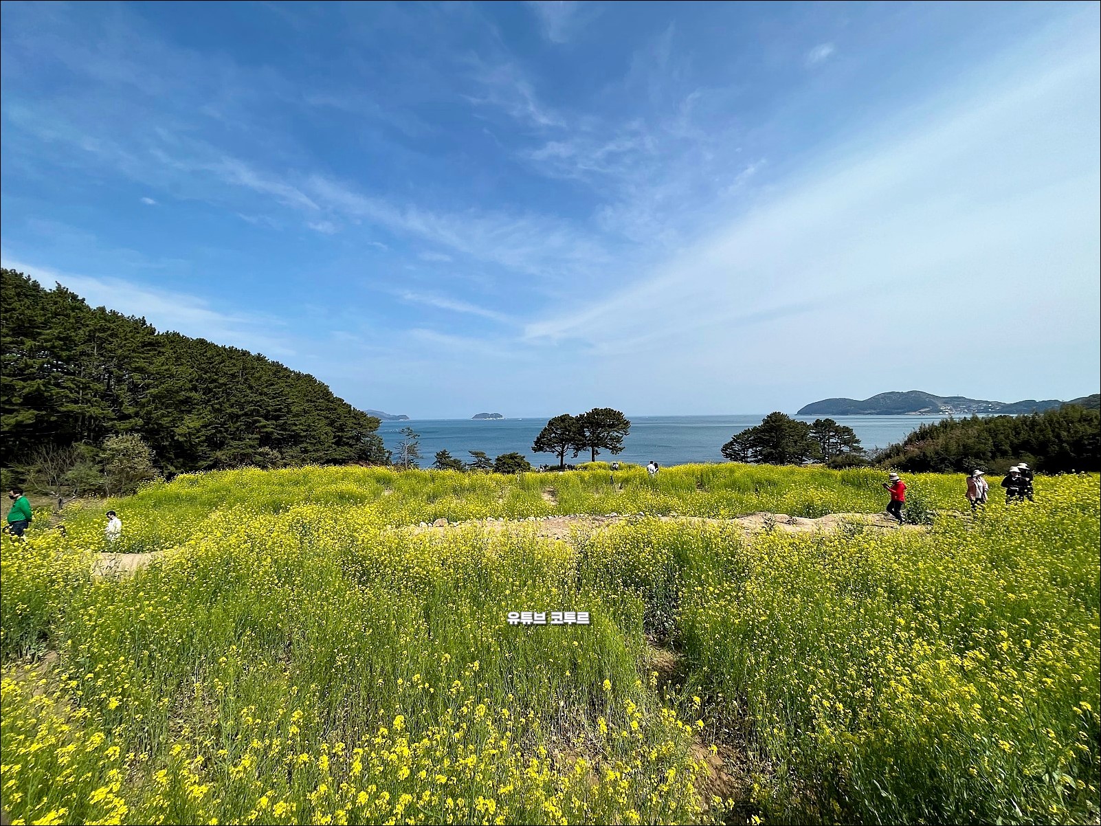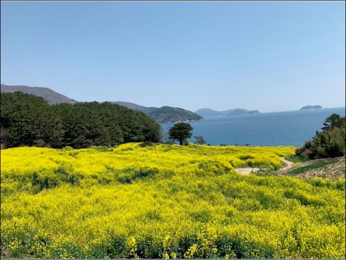 파란 바다를 배경으로 펼쳐지는 유채꽃밭을 보려고 봄이면 많은 사람들이 방문하고 있습니다.