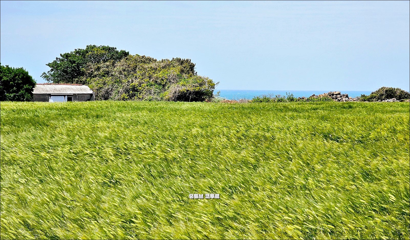 푸른 바다 너머 초록빛 청보리 물결이 일렁이는 곳입니다.