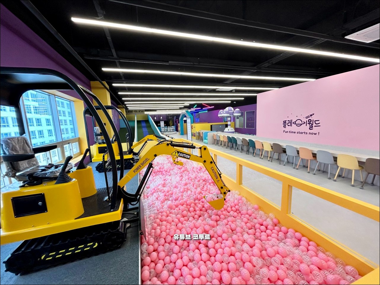 다음은 플레이월드 부천점입니다. 부천시 원미구 중동에 위치한 약 700평 규모의 대형 키즈카페입니다. 24년 12월에 새롭게 오픈해서 시설이 깔끔합니다. 포크레인, 범퍼카, 짚라인, 트램폴린 등 다양한 놀이시설이 있습니다.