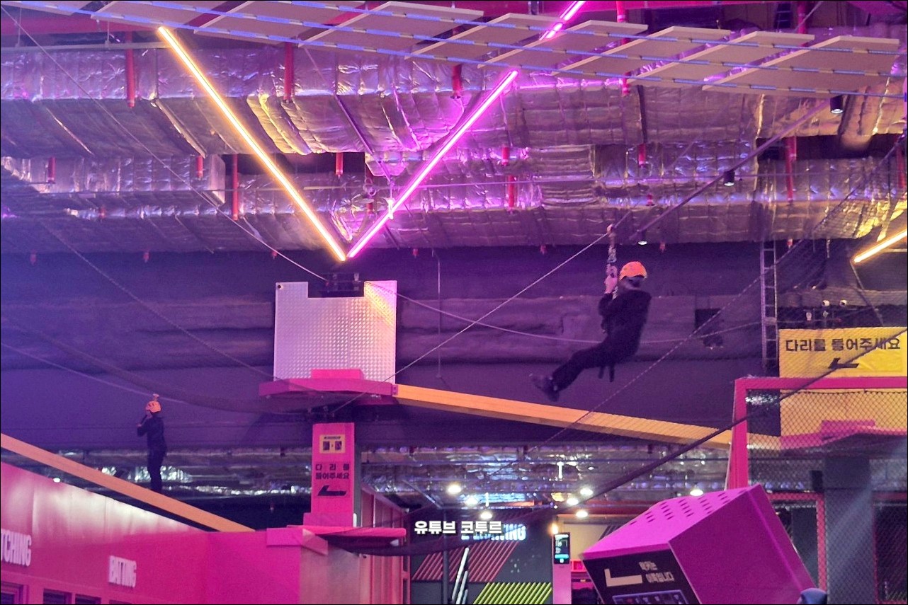 다음은 스몹 수원입니다. 수원시 장안구 장자동 스타필드 수원에 위치한 실내 스포츠 테마파크입니다. 다양한 스포츠 기반의 어트랙션을 제공하고 있고, 어린이부터 성인까지 즐길 수 있는 곳입니다. 짚라인, 버티컬 드롭 슬라이드 360도 회전 그네, 트램펄린, 양궁 등이 있습니다.