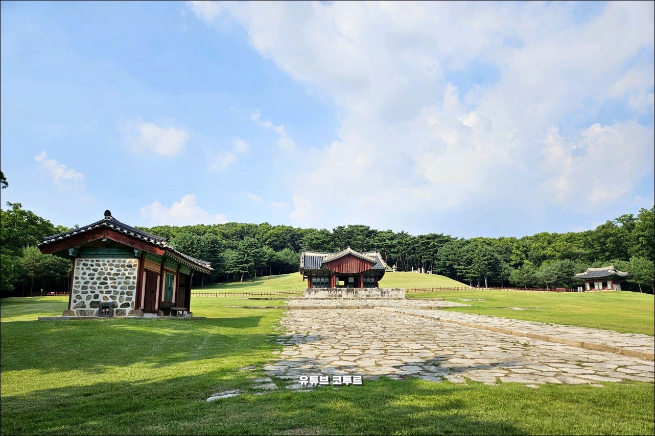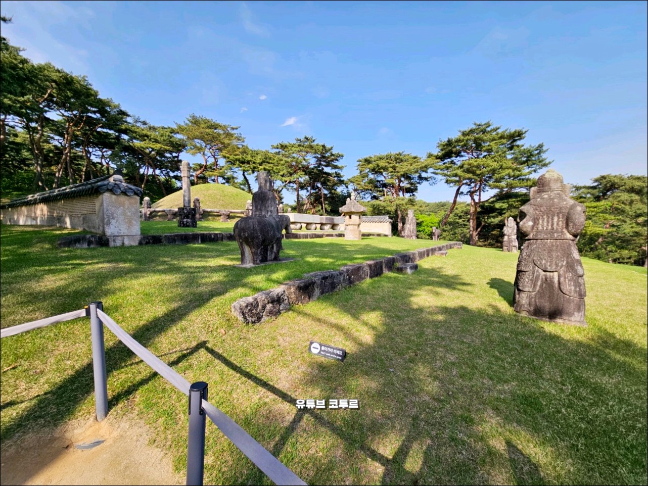 융건릉입니다. 조선시대 왕릉으로, 사도세자와 혜경궁 홍씨, 정조와 효의왕후 김씨가 묻힌 곳입니다. 숲길을 따라 걷다 보면 자연의 아름다움과 함께 역사적 장소의 매력을 느낄 수 있습니다.