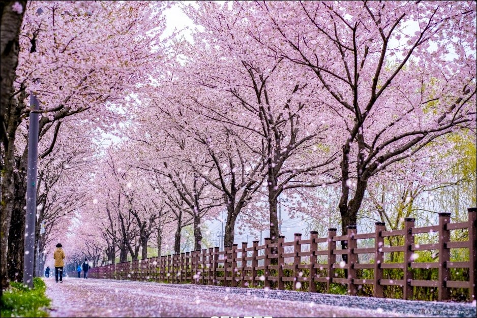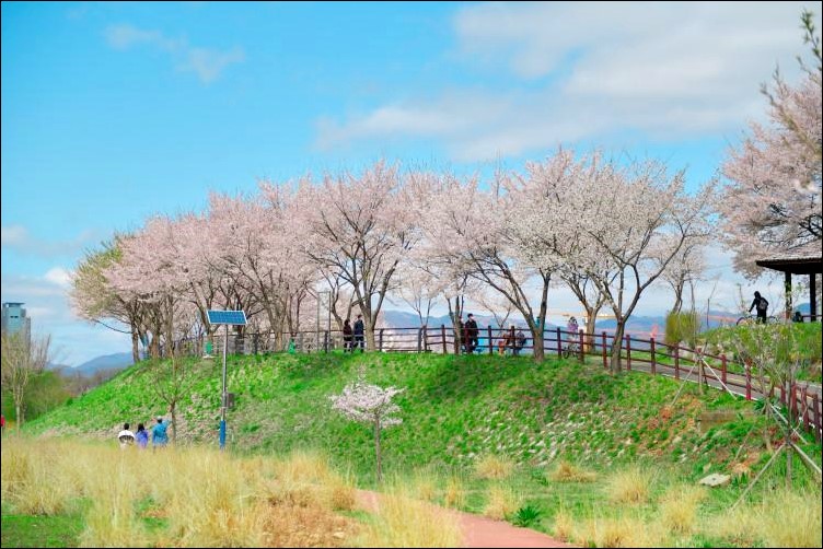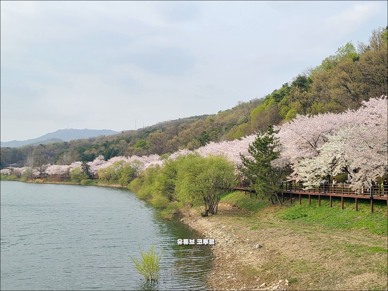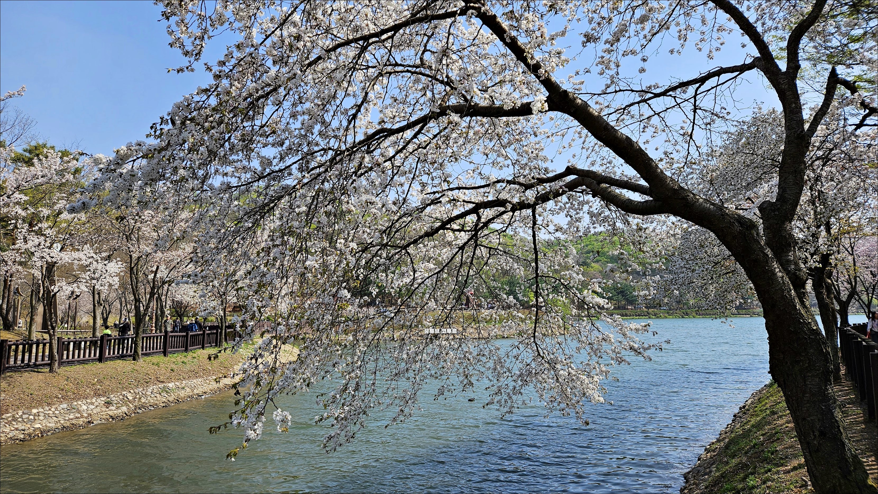 다음은 장자호수공원입니다. 장자호수공원에는 수령 20년 이상의 벚나무가 약 200여 그루가 있습니다. 호수 주변의 산책로를 따라 벚꽃을 감상할 수 있습니다.