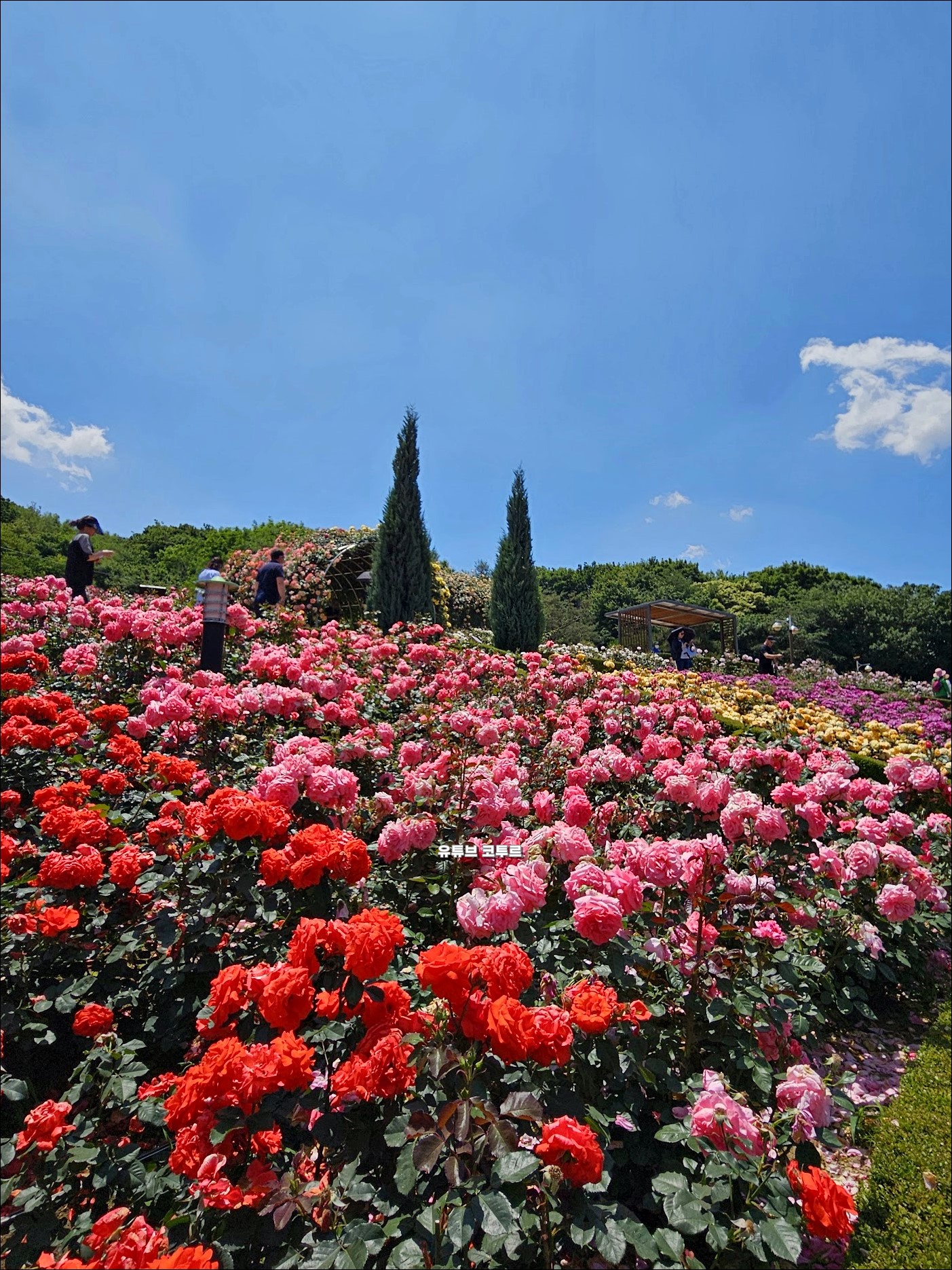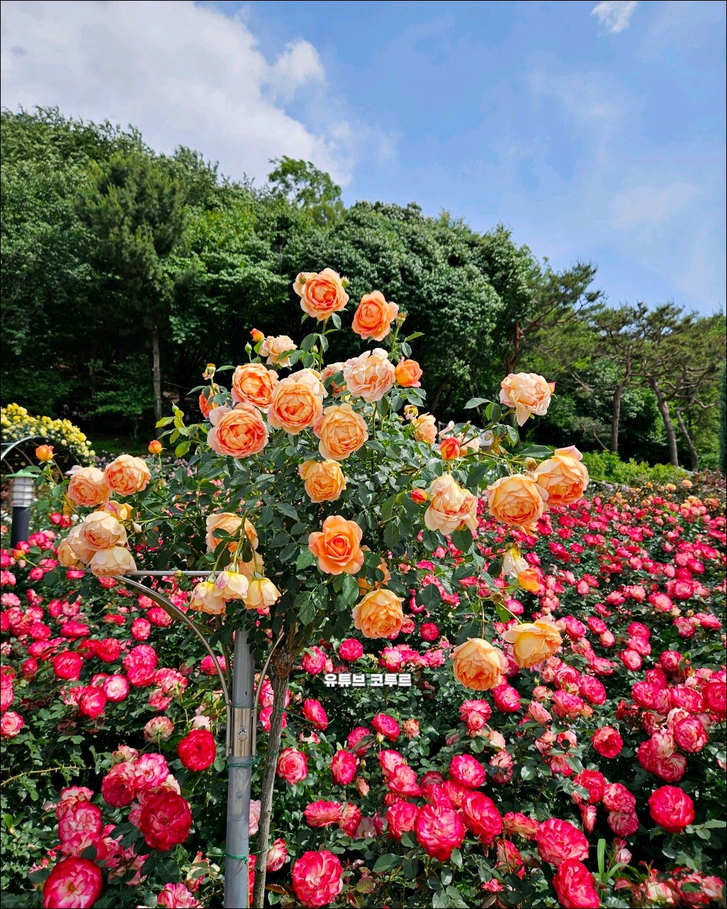 다음은 부천백만송이장미원입니다. 부천시 원미구 도당동에 위치한 국내 최대 규모의 장미공원입니다. 약 1만 4천 제곱미터의 넓이에 151종의 장미가 심어져 있습니다. 매년 5월부터 6월까지 장미가 만개합니다.