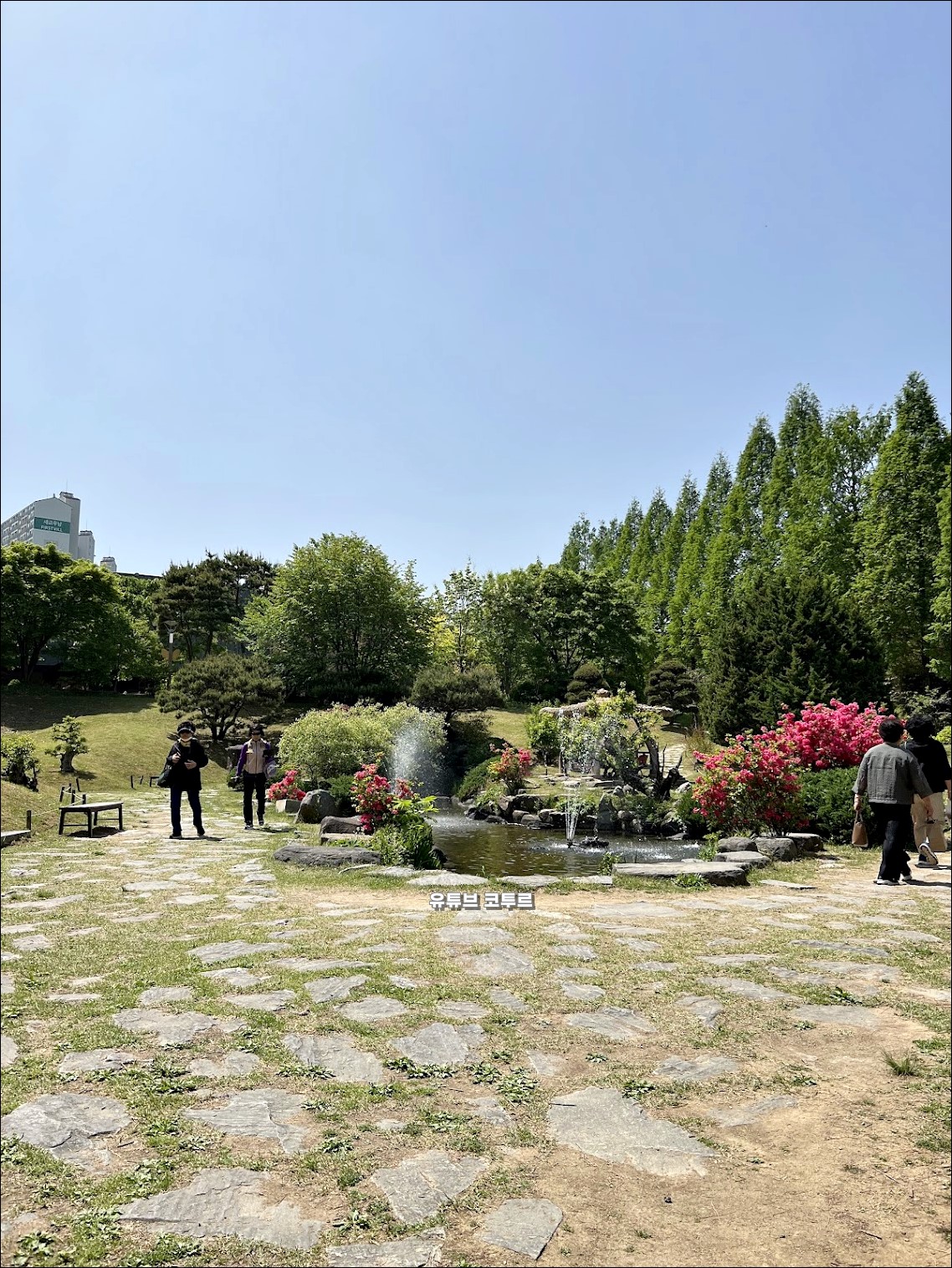 다음은 서운동산입니다. 약 16만 제곱미터의 부지에 다양한 테마 정원, 호수, 조각 공원 등이 마련되어 있습니다. 봄에 연못과 주변으로 꽃이 피어 있어서 사진이 예쁘게 잘 나옵니다.