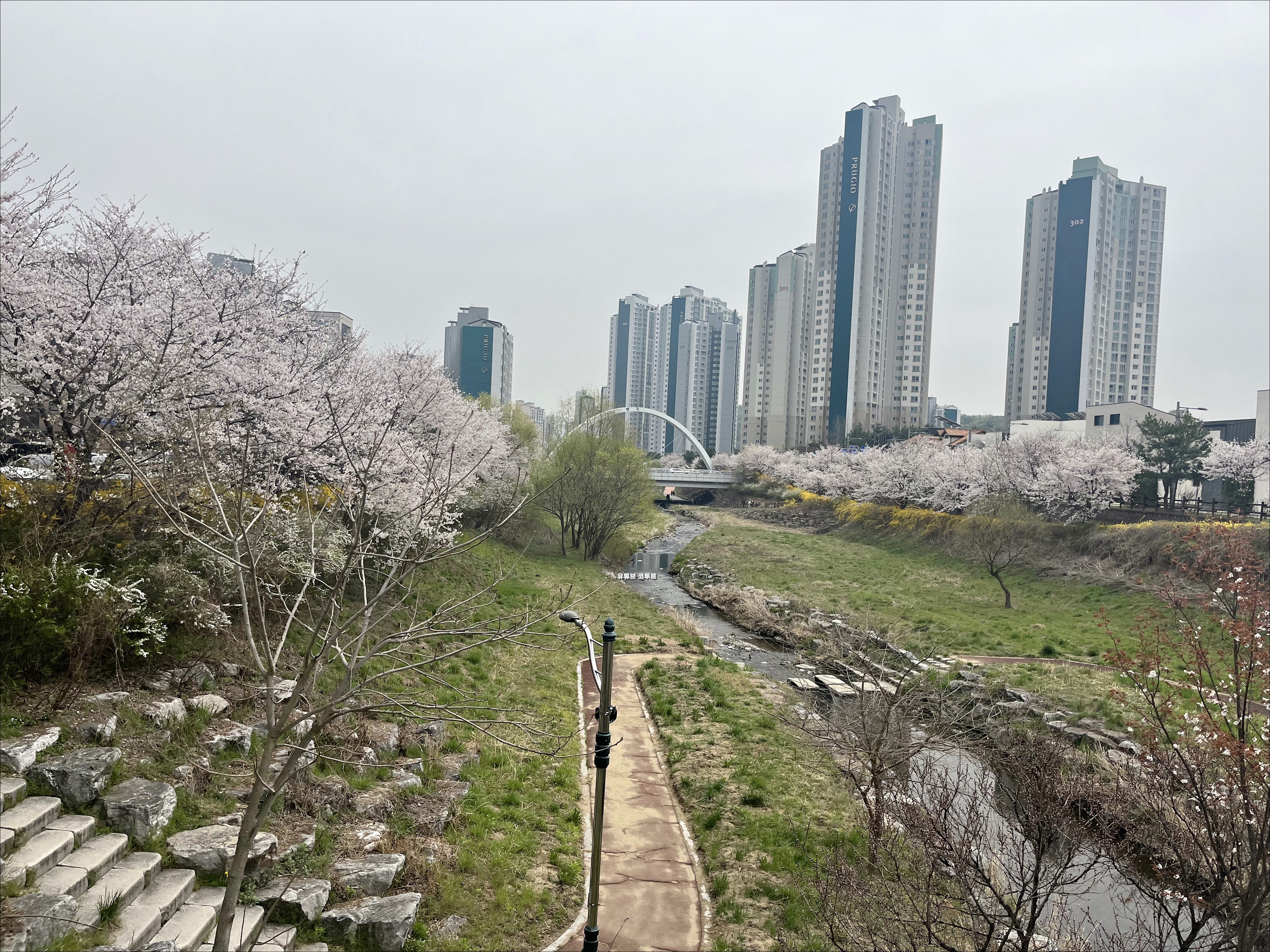 다음은 계양천 벚꽃길입니다. 김포의 벚꽃 명소입니다. 계양천을 따라 벚나무가 조성되어 있습니다.