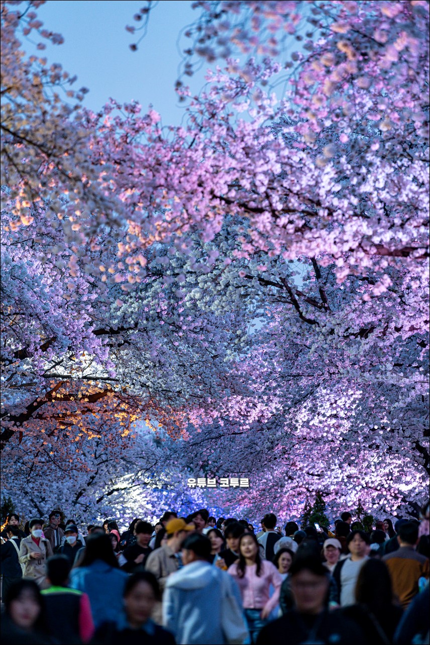 소요산 입구 벚꽃 터널입니다. 소요산 진입로와 오행로를 따라 벚꽃이 만개하여 아름다운 풍경을 제공합니다.