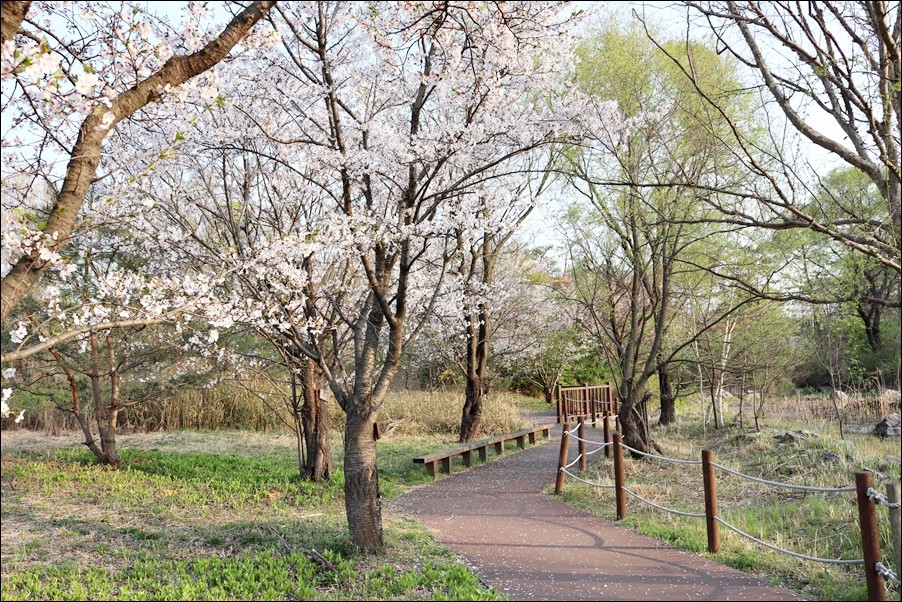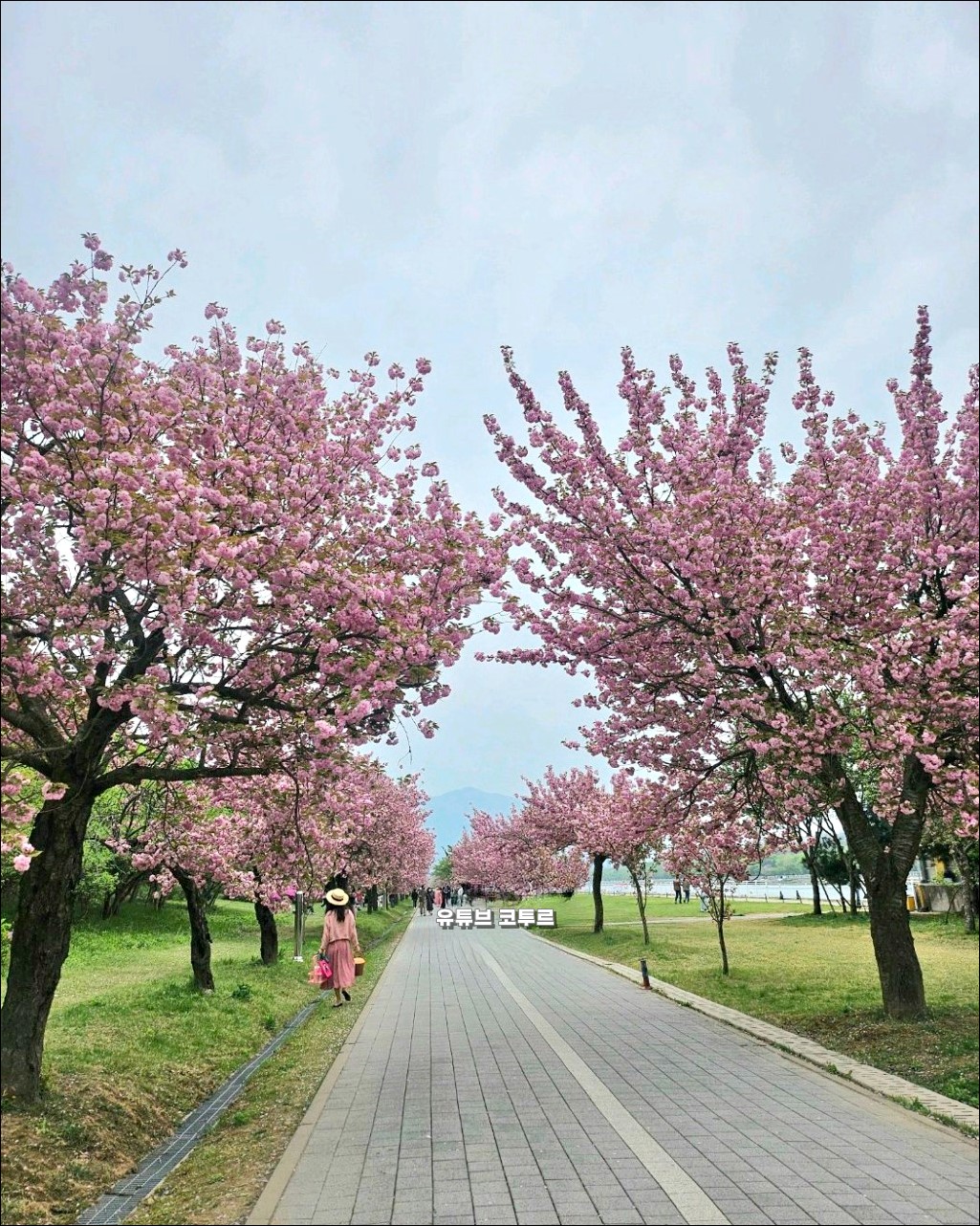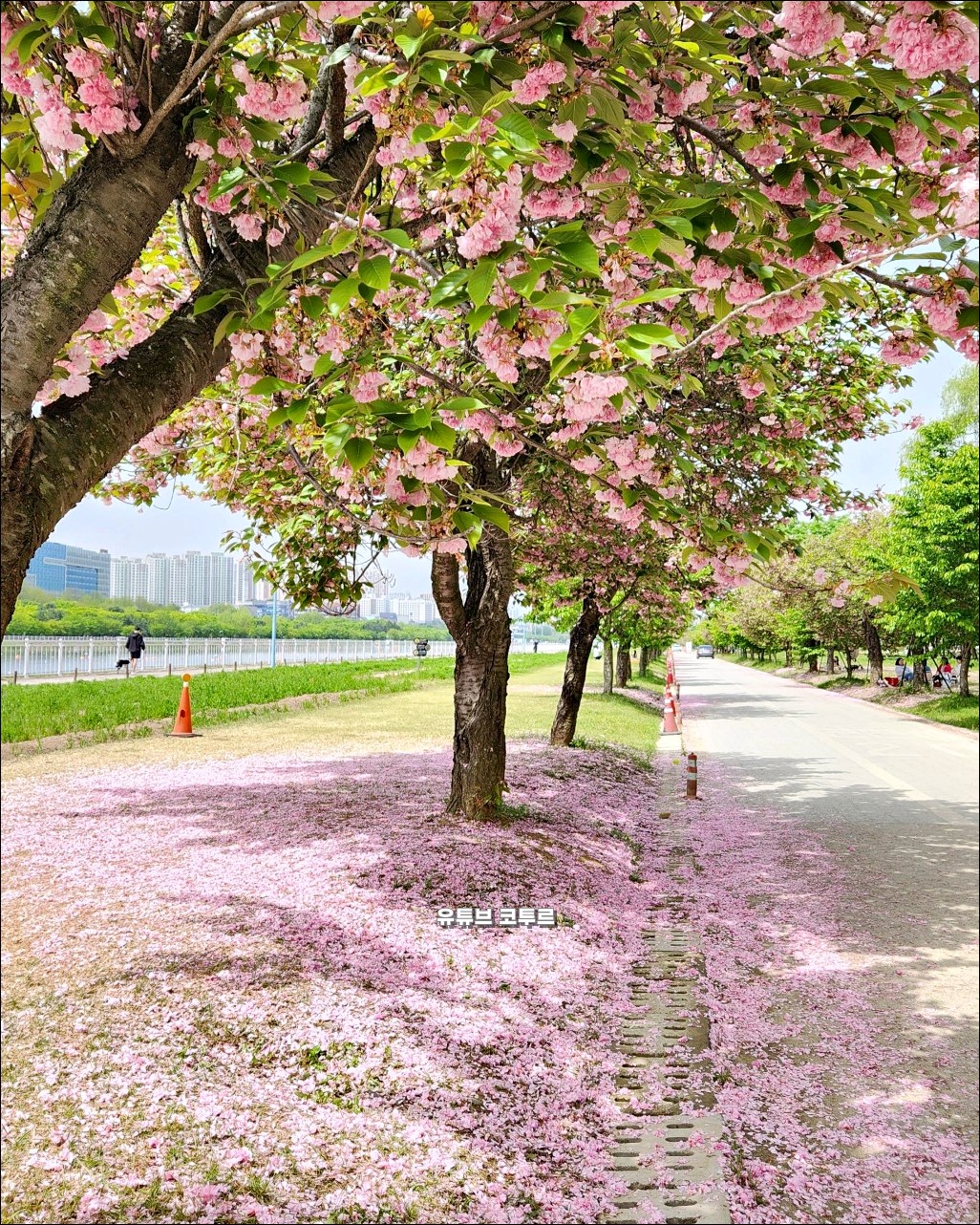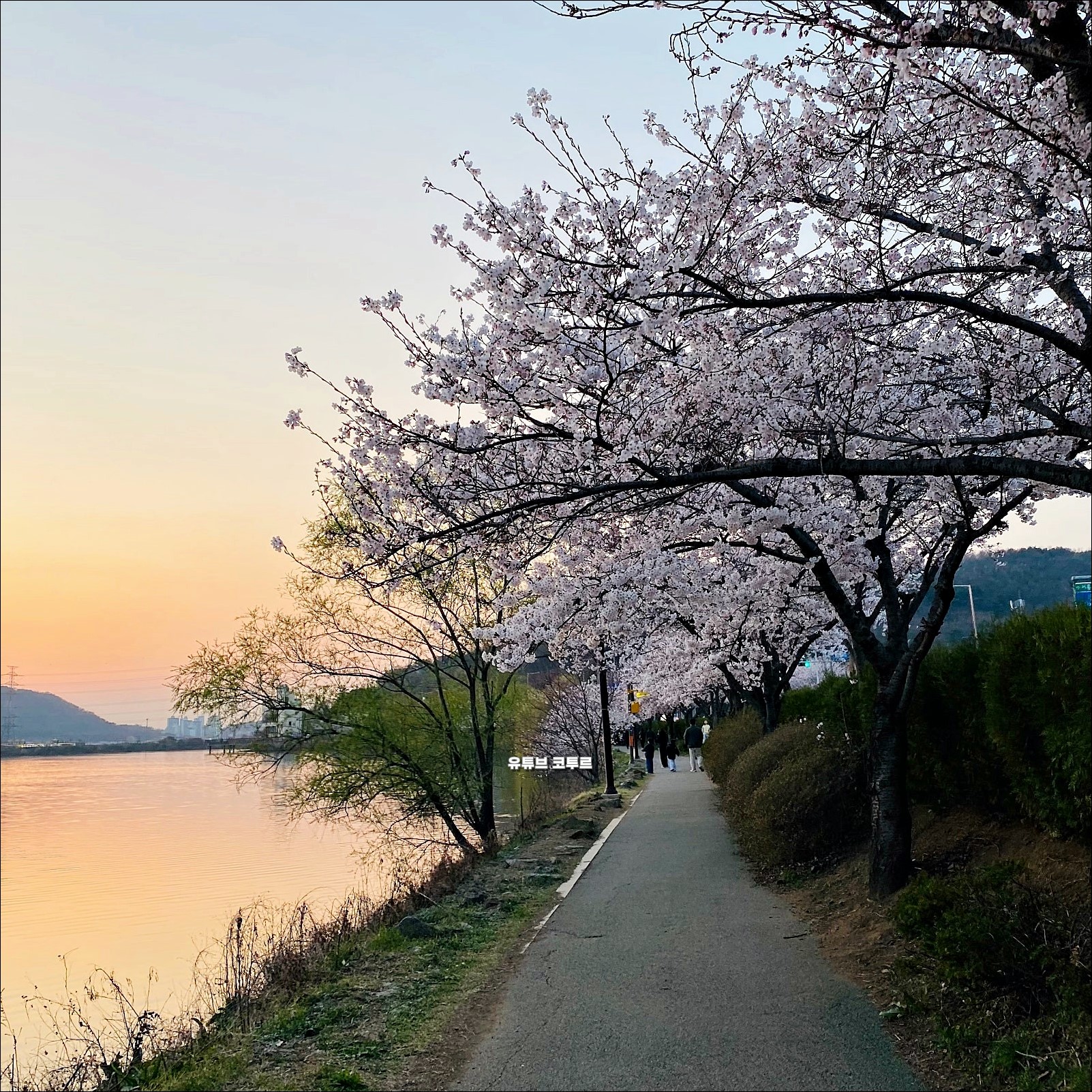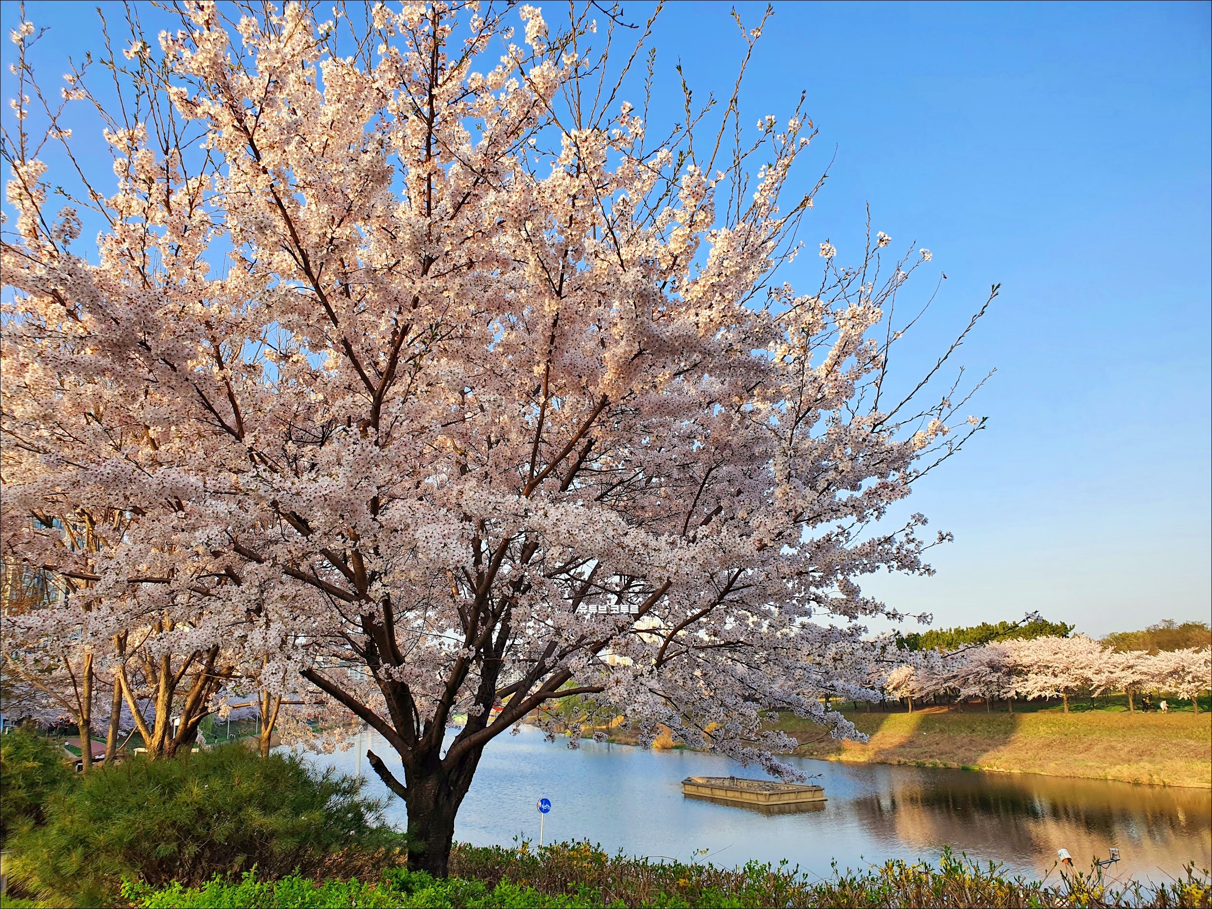 미사경정공원입니다. 하남시의 대표 벚꽃 명소로, 겹벚꽃으로 유명합니다. 벚꽃을 보면서 산책하기에 좋습니다.
