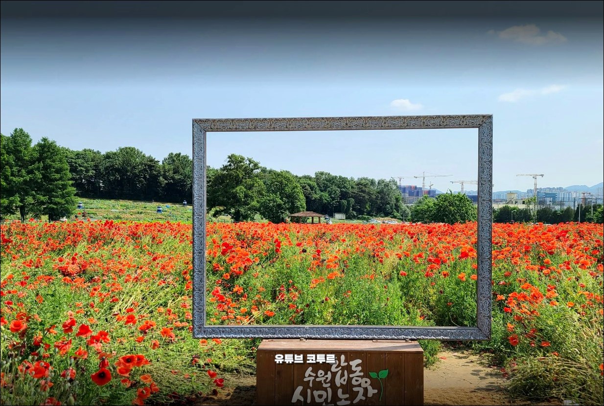 물의정원입니다. 남양주시 조안면에 위치한 수변 생태 공원입니다. 5월에 붉은 양귀비가 피어나는 모습을 볼 수 있고, 벚꽃과 개나리도 곳곳에 있습니다. 봄에 산책하기에 좋습니다.