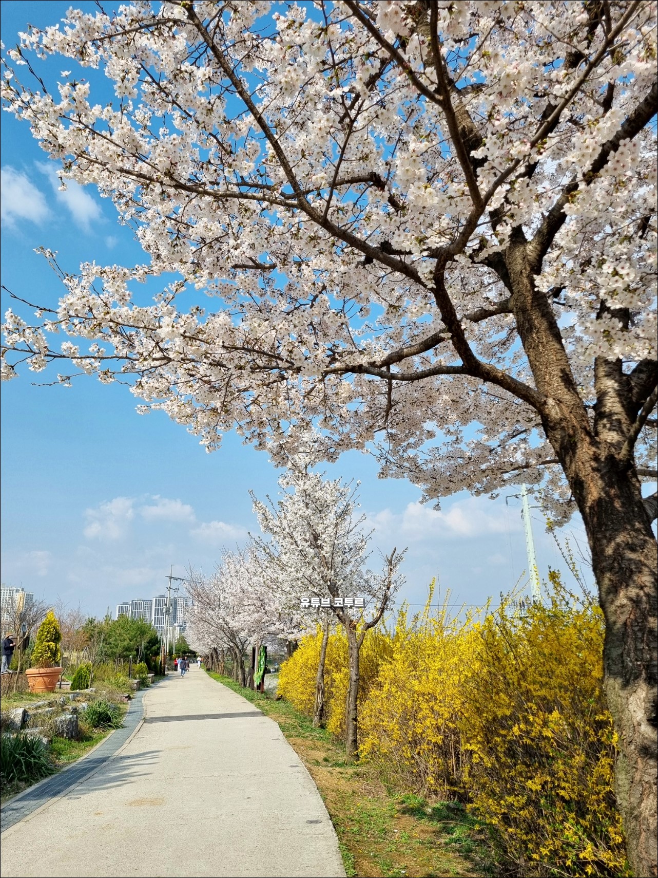 다음은 상동호수공원입니다. 부천시 원미구 상동에 위치한 대규모 공원입니다. 인공호수를 중심으로 다양한 시설과 산책로가 잘 조성되어 있습니다. 봄에 다양한 봄꽃을 만나볼 수 있습니다.