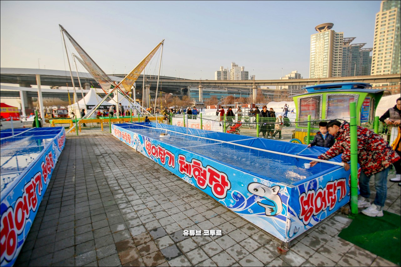 다음은 여의도한강공원 눈썰매장입니다. 여의도한강공원 이벤트 광장에서 열립니다. 대형, 소형 슬로프가 있고, 눈 놀이동산, 빙어잡기 체험, 놀이기구 등이 있습니다. 요금은 6천원이고, 오전 10시부터 오후 5시까지 운영합니다.