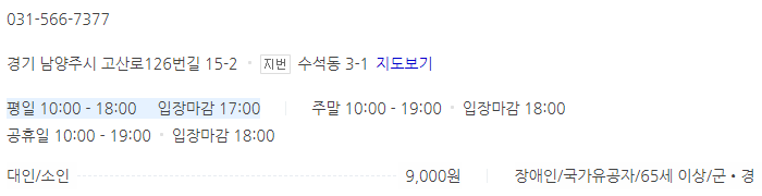 미호박물관은 남양주시 공룡 박물관 중에서는 가장 유명한 박물관입니다. 남양주에 사는 공룡 좋아하는 아이 치고 여기 안 가본 아이는 없을 겁니다. 남양주시 수석동에 위치해 있습니다. 많은 종류들의 공룡들이 전시가 되어있고, 공룡 화석도 많이 있습니다. 아이들이 체험할 수 있는 체험활동도 있고, VR체험도 있어서 아이들이 좋아한다는 평입니다. 아무래도 사설 전시관이다보니 관리가 제일 중요한데, 아무래도 인기가 많다보니 관리가 잘 된다는 평입니다.