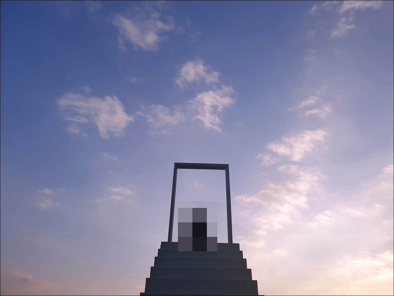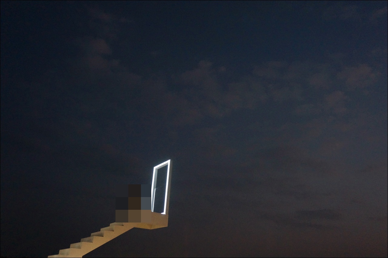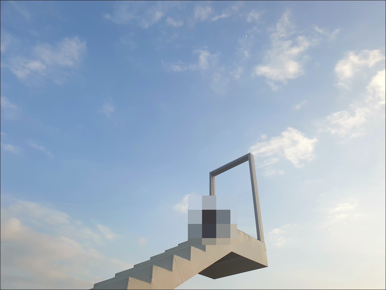 카페 밖에 이런 조형물이 있는데, 여기 올라가서 사진을 찍게 되면 굉장히 멋진 사진을 건질 수 있습니다. 날씨에 따라서, 각도에 따라서, 낮과 밤에 따라서 굉장히 다양한 모습을 연출 할 수 있는데요. 여기서 사진을 찍으려면 카페에서 음료를 꼭 주문해야 됩니다. 제주도에서 이와 비슷한 조형물이 있습니다.