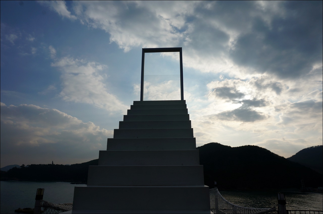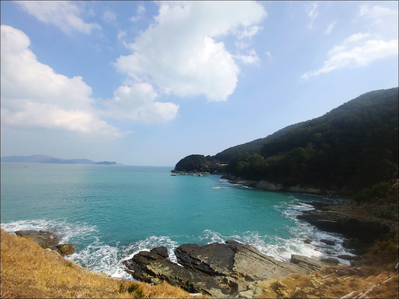 바로 이 아름다운 남해바다의 모습을 볼 수 있다는 점이죠. 약간 언덕에 올라가서 바다를 내려다보면 정말 멋진 풍경이 보입니다. 게다가 언덕 위에 약간 넓은 부지가 있어서 거기서 여러 모습으로 사진을 찍을 수 있습니다. 젊은 사람들은 거기서 단체로 점프사진을 많이 찍더군요.