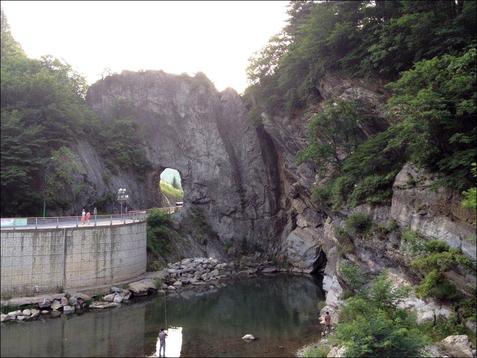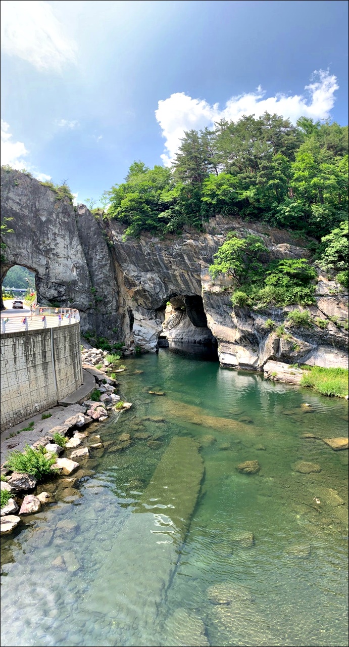 태백 구문소에 가면 신기한 돌문을 볼 수 있습니다. 이게 바람과 강물에 의해서 자연침식이 된 건데요. 이 구문소관광지는 우리나라 천연기념물 417호로 지정되어 있습니다. 구문소 옆으로는 황지천이 흐르고 있습니다.