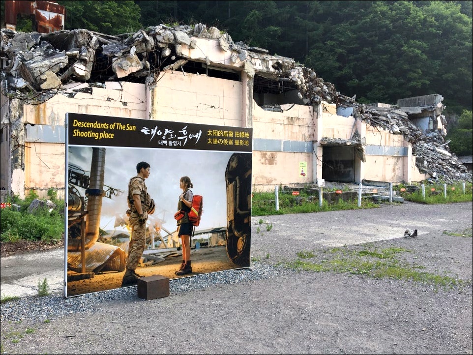 실제로 태양의 후예 드라마를 촬영한 세트장이 태백에 있는데요. 드라마 방영이 끝나고 많은 분들이 이 관광지에 찾아왔다고 합니다. 근데 작년 여름 이후로 관광객이 조금 줄었는데, 그 이유는 송송커플이 헤어져서라고 하네요. 두 배우들 팬들이 많이 찾아갔었나 봅니다.