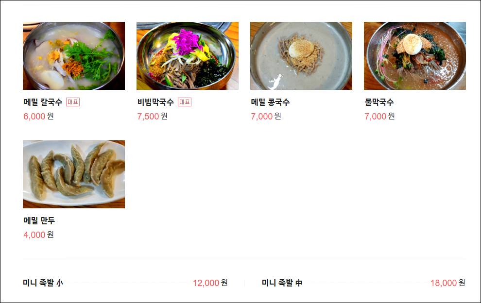칼국수와 비빔막국수가 인기가 제일 많은데요. 일단 가격이 너무 착해서 좋습니다. 바지락 메밀 칼국수는 6천원, 비빔막국수는 7천원입니다. 칼국수에 바지락이 들어있어서 국물맛이 좋은데, 면이 일반 면이 아닌 메밀면이라서 쫄깃하고 고소하니 맛있습니다. 미니족발도 판매하고 있는데 곁들여서 같이 먹어보세요. 정말 맛있습니다.