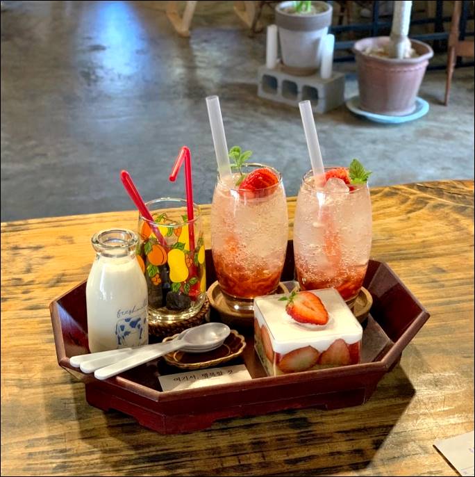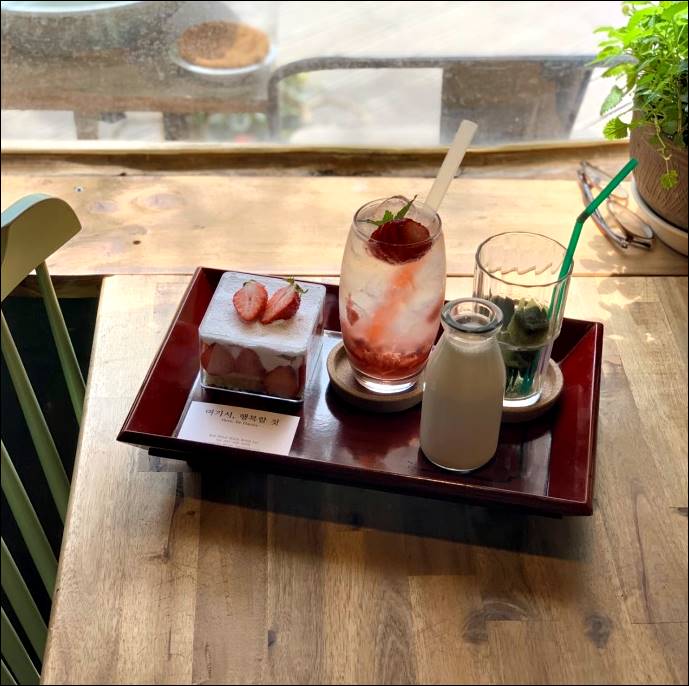 여기서 가장 인기가 많은 디저트류는 바로 티라미스입니다. 딸기 티라미스와 인절미 티라미스가 인기가 많은데요. 맛있는 음료도 다양하게 있어서 먹고 나면 기분이 좋아집니다. 카페 밖에는 푸른 나무들이 반기고 있고, 안에는 따뜻한 감성이 느껴지는 카페입니다.