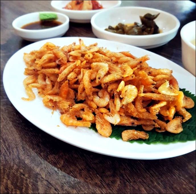 대흥식당의 별미는 바로 이 새우튀김인데요. 100퍼센트 새우로 만든 튀김입니다. 민물새우라서 크기가 좀 작은데요. 겉은 바삭하고 안에는 부드럽습니다. 처음 딱 씹게 되면 고소한 새우향이 입안에 퍼지게 되는데, 계속 집어먹게 되네요.