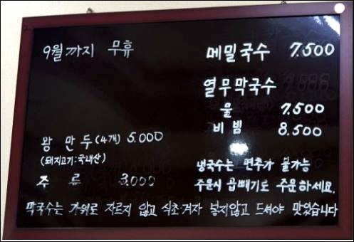 메뉴는 메밀국수, 열무막국수 그리고 왕만두가 되는데요. 굉장히 간단한 메뉴인데도 사람이 몰리는 데는 그럴만한 이유가 있겠죠. 특히 열무막국수가 인기가 많은데요. 열무도 많이 들어있고, 국물도 정말 시원합니다. 면발도 어찌나 쫄깃한지. 왜 사람들이 이렇게 많이 몰리는지 이해가 되네요. 시원한 열무막국수에 만두를 같이 먹고나면 정말 배가 부릅니다.