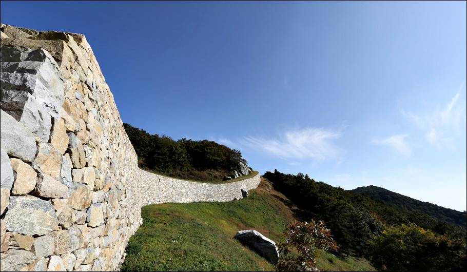 이 성은 해발 483.9m의 봉수산에 위치해 있는데, 성 아래까지 임도를 이용해서 승용차로 올라갈 수 있습니다. 성이 없었다면 평범한 산이었을 텐데, 성이 산 주위를 두르고 있어서 뭔가 다른 분위기를 자아내네요.