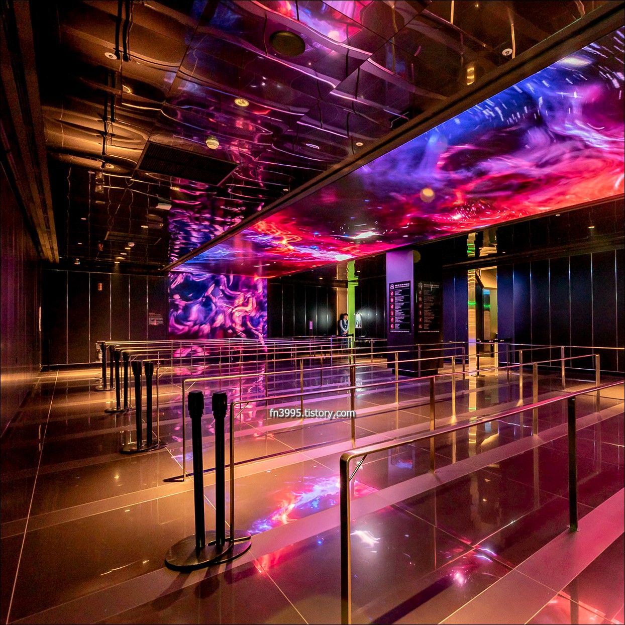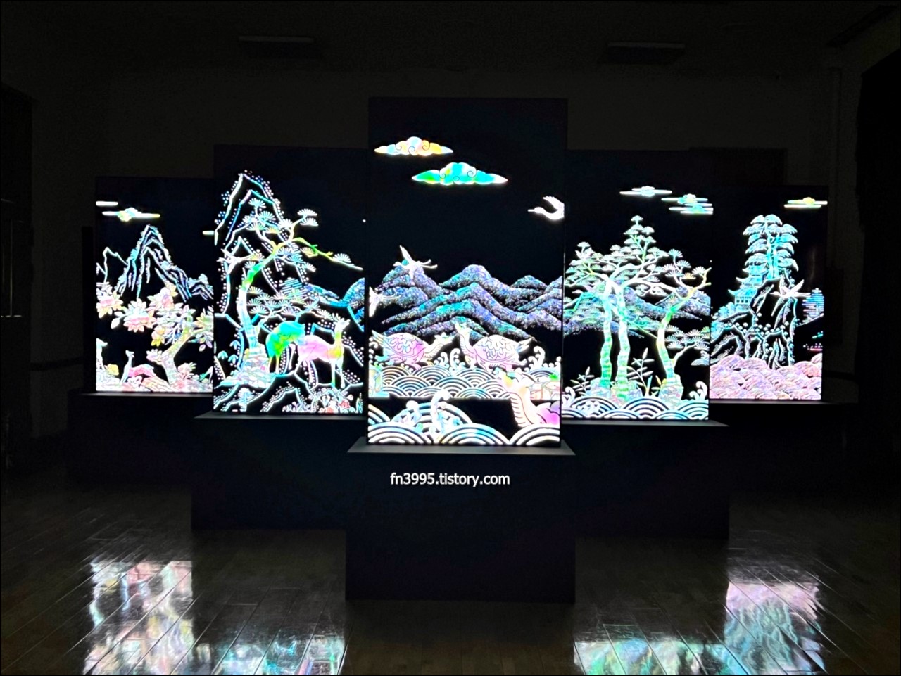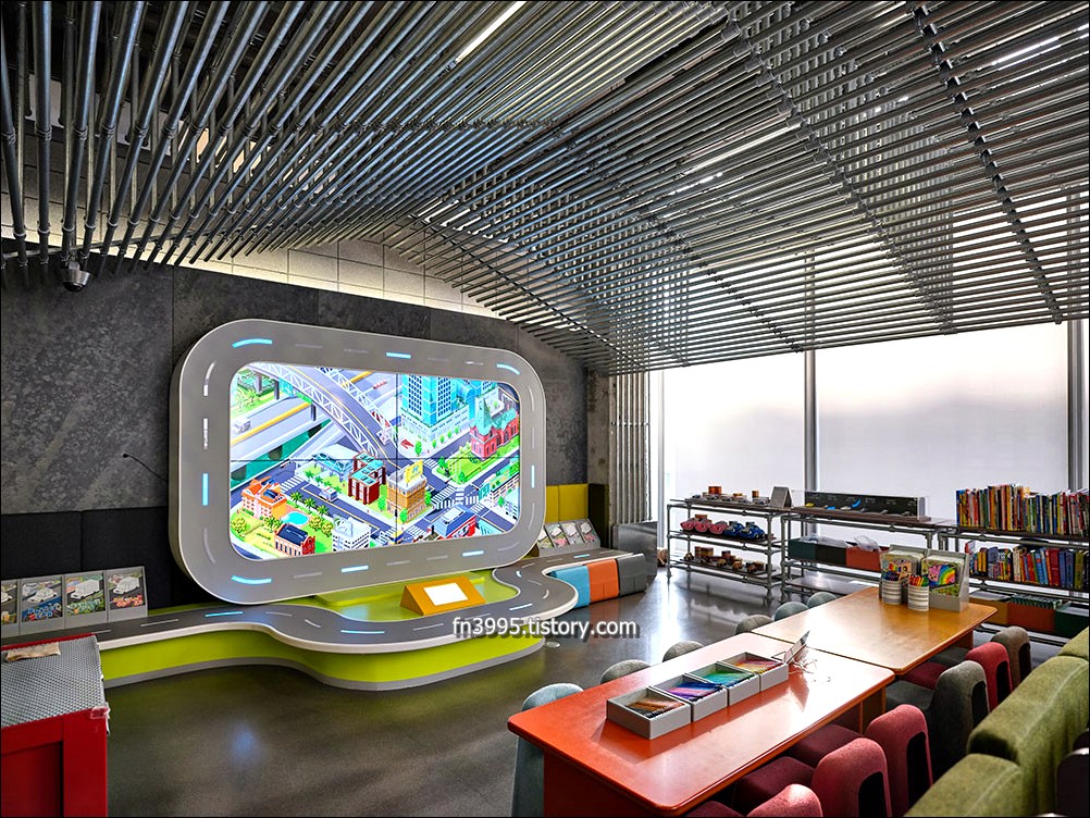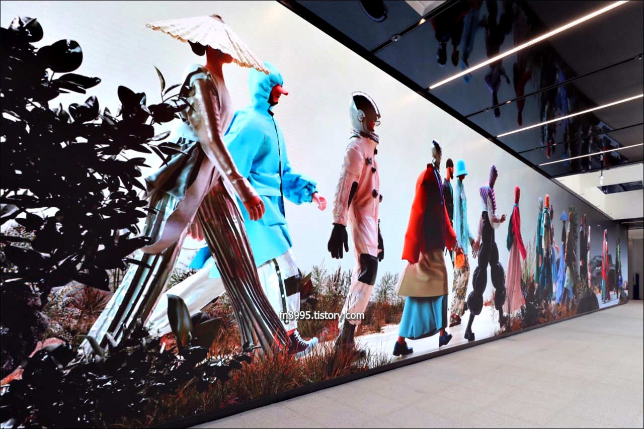 1층은 미디어 아트를 즐길 수 있는 공간으로 되어 있는데, 미디어 아티스트 이이남 작가의 신도시산수도를 볼 수 있습니다. 2층에는 XR라이브 스튜디오를 활용하여 케이팝 뮤직비디오를 직접 제작할 수 있습니다. 춤 게임도 있고, 재밌는 요소들이 많이 있습니다. 외국인들이 많이 방문하는데, 내국인들도 많이 찾아옵니다.